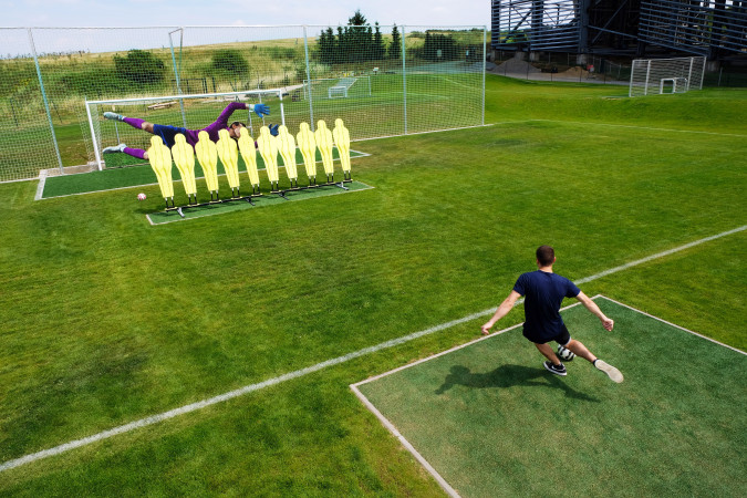 14 playing fields, one aim. Similar to soccer golf, but on our unique FunFußball course the ball has to be shot into the goal with as few shots as possible.